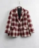 Σακάκι με γιακά με πέτο.Διαθέτει καρό μοτίβο και ενδεδυμένους ώμους. Κλείσιμο με κουμπιά στο μονόπετο και μπροστινές τσέπες με καπάκι.